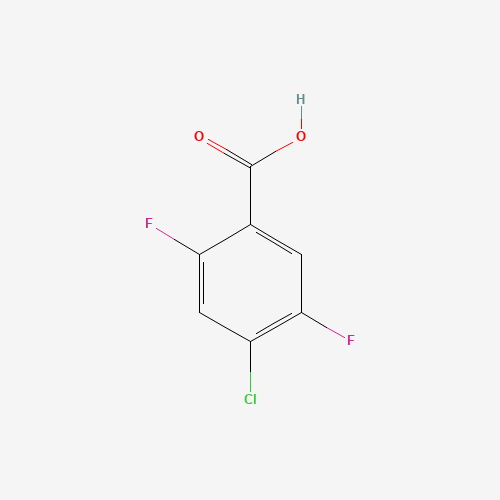 The molecular weight of 4-Chloro-2,5-difluorobenzoic acid is 192.55 g/mol. The InChI key is PEPCYJSDHYMIFN-UHFFFAOYSA-N. The SMILES string is OC(=O)c1cc(F)c(Cl)cc1F.